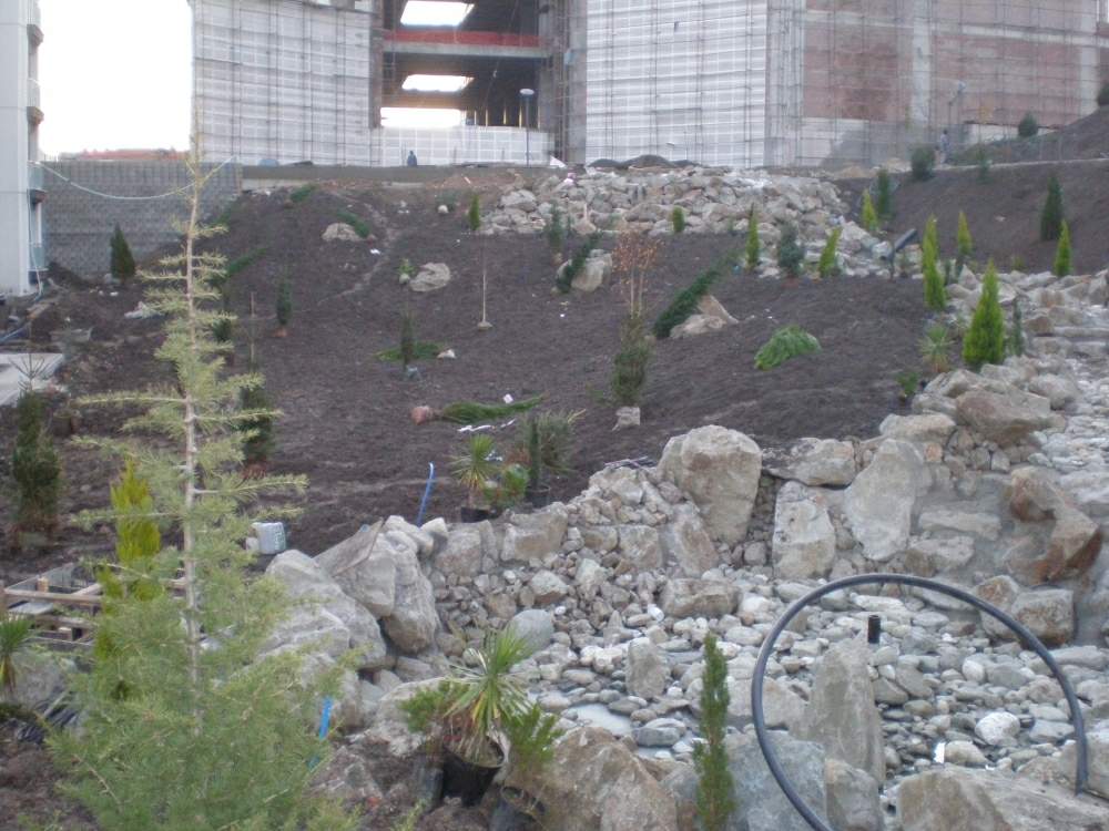 DİVAN AVM VE KONUTLARI 14550 M2 YEŞİL ALAN VE OTOMATİK SULAMA SİSTEMİ KURULMUŞTUR. YAPISAL PEYZAJ İŞLERİ KAPSAMINDA ŞELALE VE GÖLET İMALATI YAPILMIŞTIR.