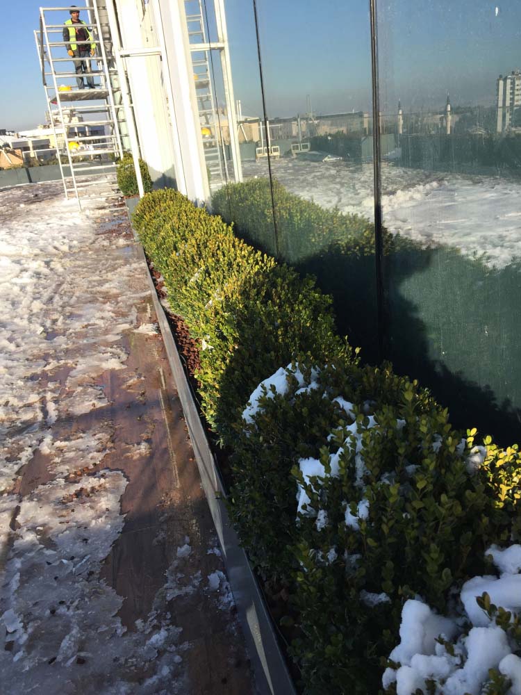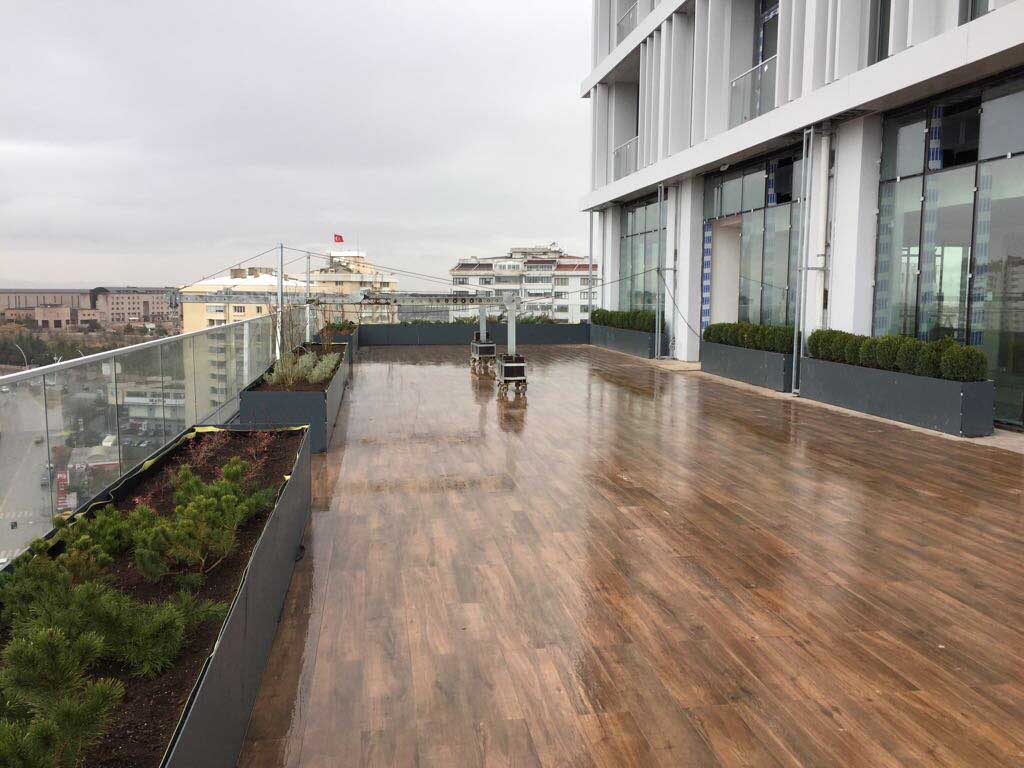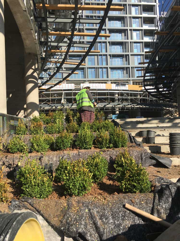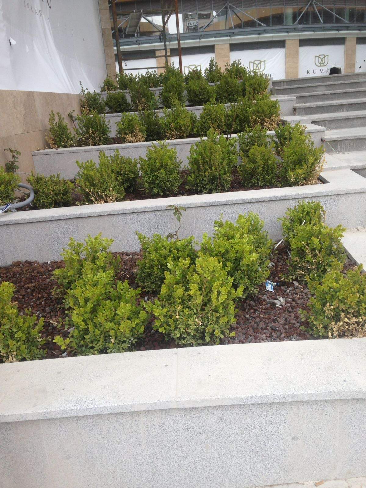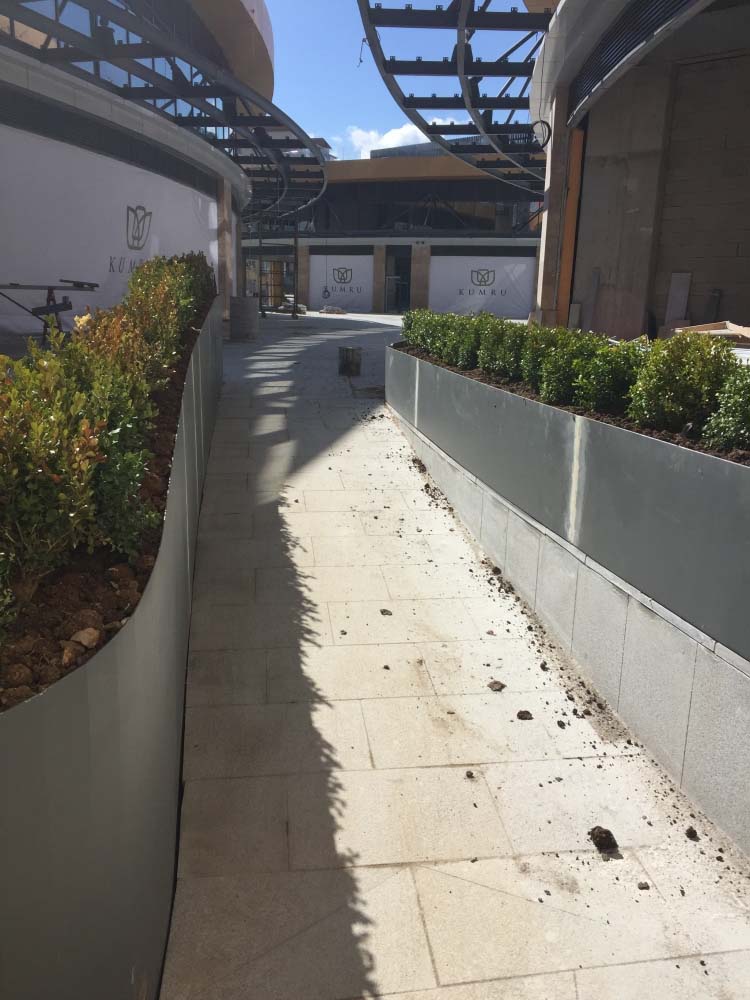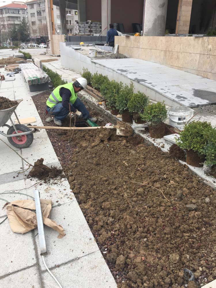 YAPISAL VE BİTKİSEL PEYZAJ İŞLERİ TAAHHÜDÜ BİR ADET KONUTBLOĞU ,İKİ ADET TİCARET BLOĞU 2700 m² yeşil alan, sert peyzaj , donatı elemanları, ve dekoratik metal ve fiber saksılar alana yerleştirilmiştir.
