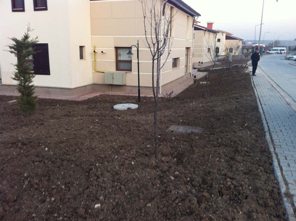 SEVGİ EVLERİ PEYZAJ YAPIMI 8500 M2 YEŞİL ALAN VE OTOMATİK SULAMA SİSTEMİ KURULMUŞTUR.